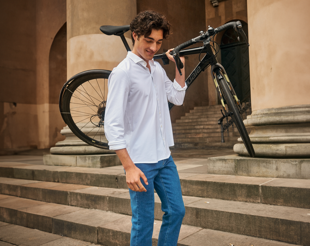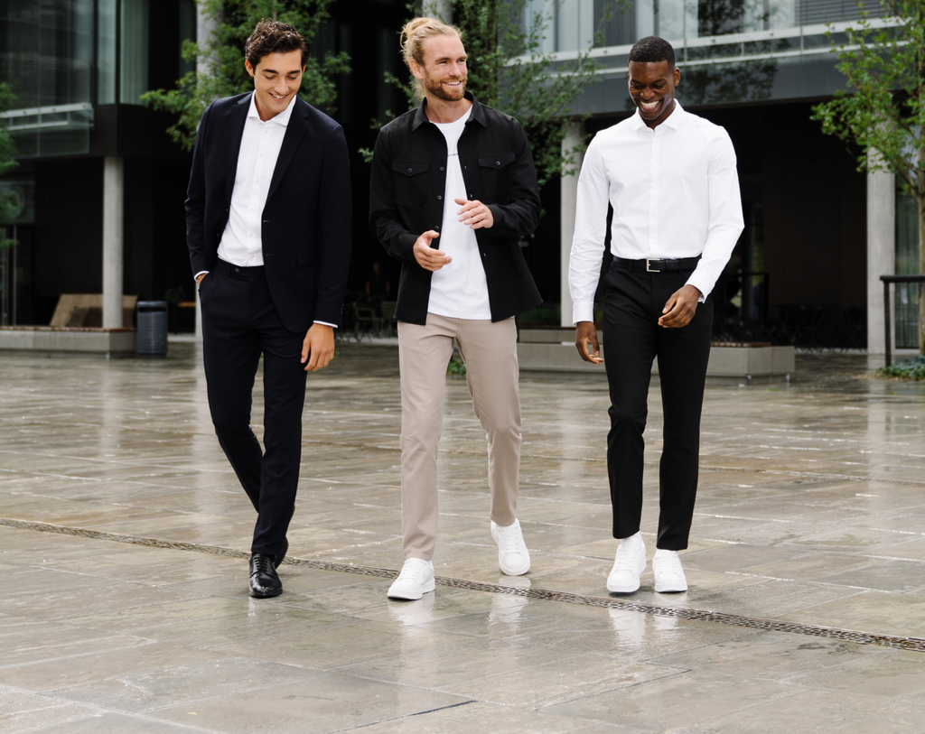 Lige siden begyndelsen har vores mål været skarpt aftegnet. Vi vil skabe det perfekte herretøj. For os er design og komfort nødvendige at kombinere, så vores garderobe passer til det aktive liv, de fleste af os lever i dag. Og det gør man ikke bare sådan lige. Vi har brugt lang tid på at nå derhen, hvor vi er i dag. Derfor er vi stolte af at kunne præsentere vores brede og alsidige sortiment, der repræsenterer kulminationen af vores anstrengelser. Ud over vores hjertebarn – The Perfect Pants – finder du også skjorter, shorts, blazere, jakkesæt mv. fra SHAPING NEW TOMORROW, som alle indkapsler de værdier, som vores udviklingsrejse er drevet af.