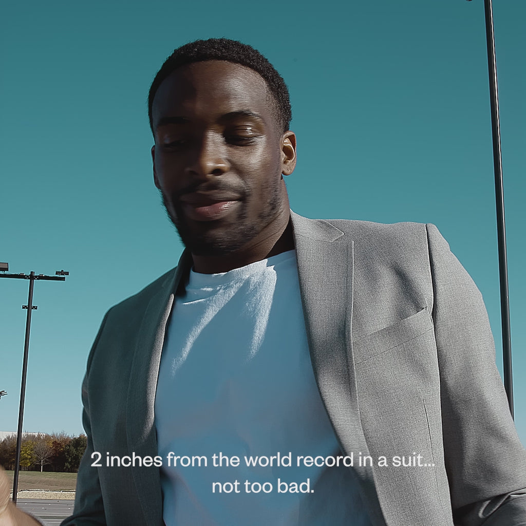 Se lige dette spændende samarbejde med Darius Clark, Guinness World Record-holderen for det højeste, vertikale hop! Darius forsøger at slå sin egen rekord, iført vores Essential Suit, hvilket tydeligt viser at stil og performance sagtens kan gå hånd i hånd. Denne præstation handler ikke udelukkende om at sætte nye rekorder; men om at skubbe grænsen for hvad der er muligt, og inspirere andre til opnå nye højder.Forbered dig på at blive forbløffet, når du ser Darius Clark forsøge at slå sin egen verdensrekord i hans højeste, vertikale hop iført vores suit!