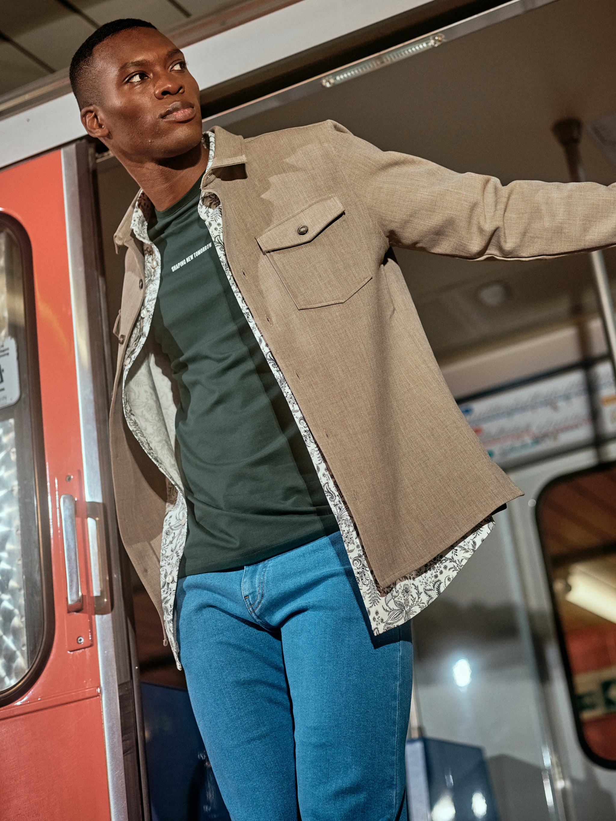 - Layered Sophistication: Når du lader lagene arbejde for dig, er det nemt at skabe et stilfuldt: Hvid skjorte i bukserne, khakifarvet striktrøje ud over som et ekstra lag og en brun uldjakke til at fuldende looket. Det var det.