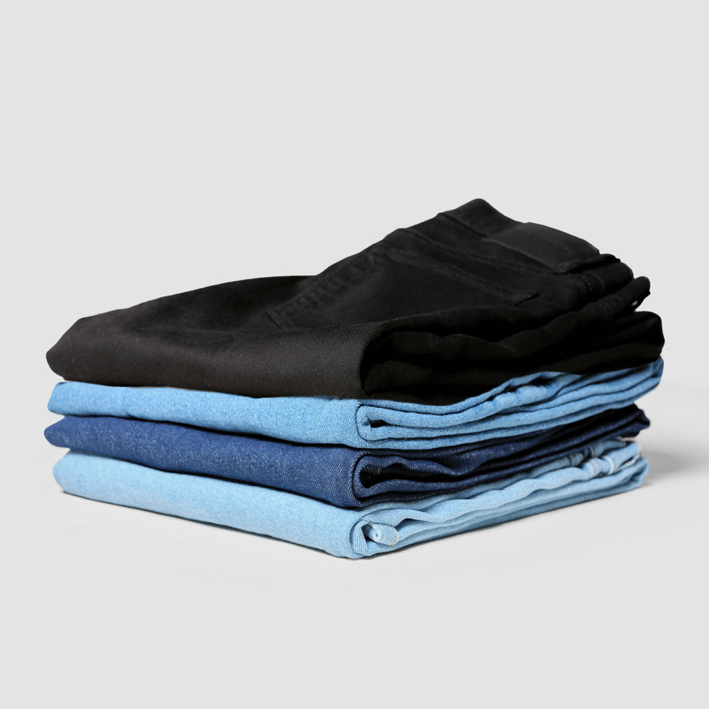 Fordi alle har forskellige behov og præferencer i bukser, fås vores Classic Jeans i to pasformer og tre farver, alle i blå nuancer,