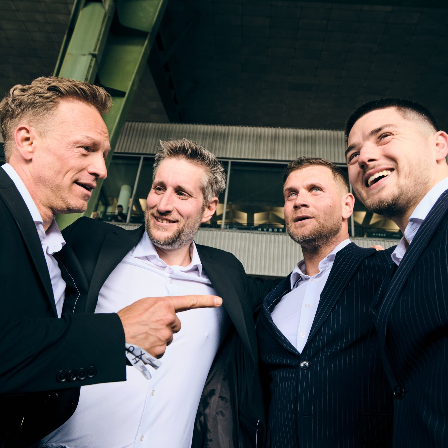 Bukser, skjorter og blazere vælges, og træningen for de to hold begynder, inden de mødes igen den store dag. Den 20. april 2024 var det tid. De fire venner giver alt, hvad de har ved det store arrangement i Berlin. Uanset om det gælder burpees, roning eller sandbag lunges, mestrer de hver workout med stil i det åndbare Essential Suit med 360° stræk – og efter at have gennemført konkurrencen ser de stadig godt ud takket være materialet, der krøller minimalt.