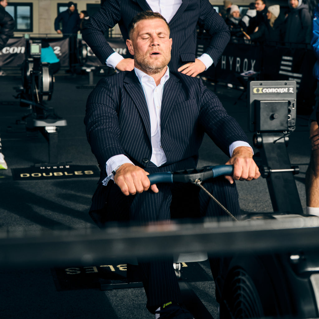 Hvad som helst i et jakkesæt? Det skal sættes på prøve i den næste Essential Suit-udfordring! Mimi og Leonhard Holzner fra NICE Athletic Club udfordrer derfor Markus Ertelt og Björn Hahn i HYROX-konkurrencen i Berlin.