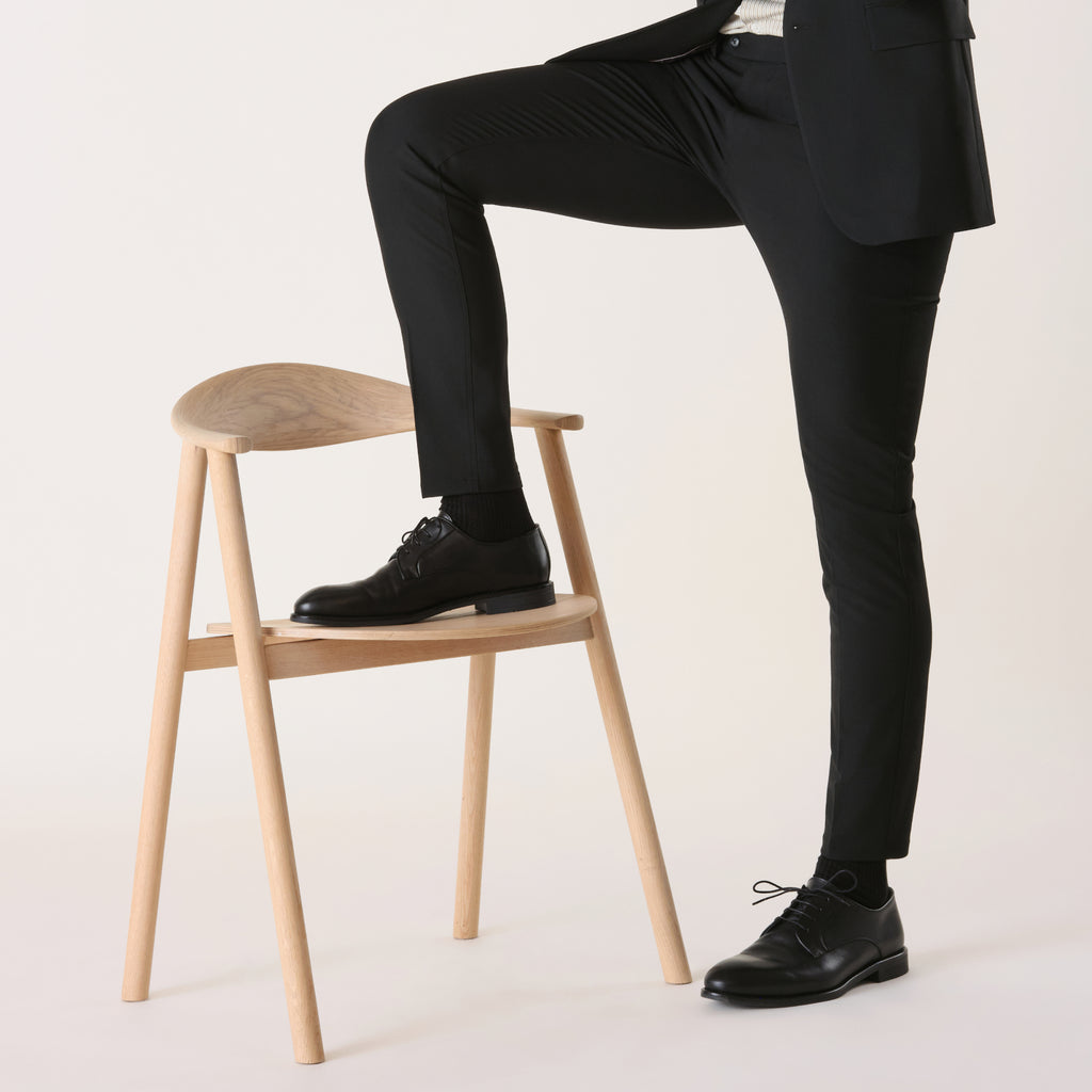 Hvis du derimod skal bruge et jakkesæt til f.eks. en jobsamtale, til arbejdet eller til årets fest, bør du satse mere sikkert. Du kan aldrig gå galt i byen med et gråt eller marineblåt jakkesæt, men sort er også altid et sikkert valg. De her farver kan du kombinere med en klassisk skjorte som vores Perfect Shirt. Den er både stilren og super behagelig at have på.