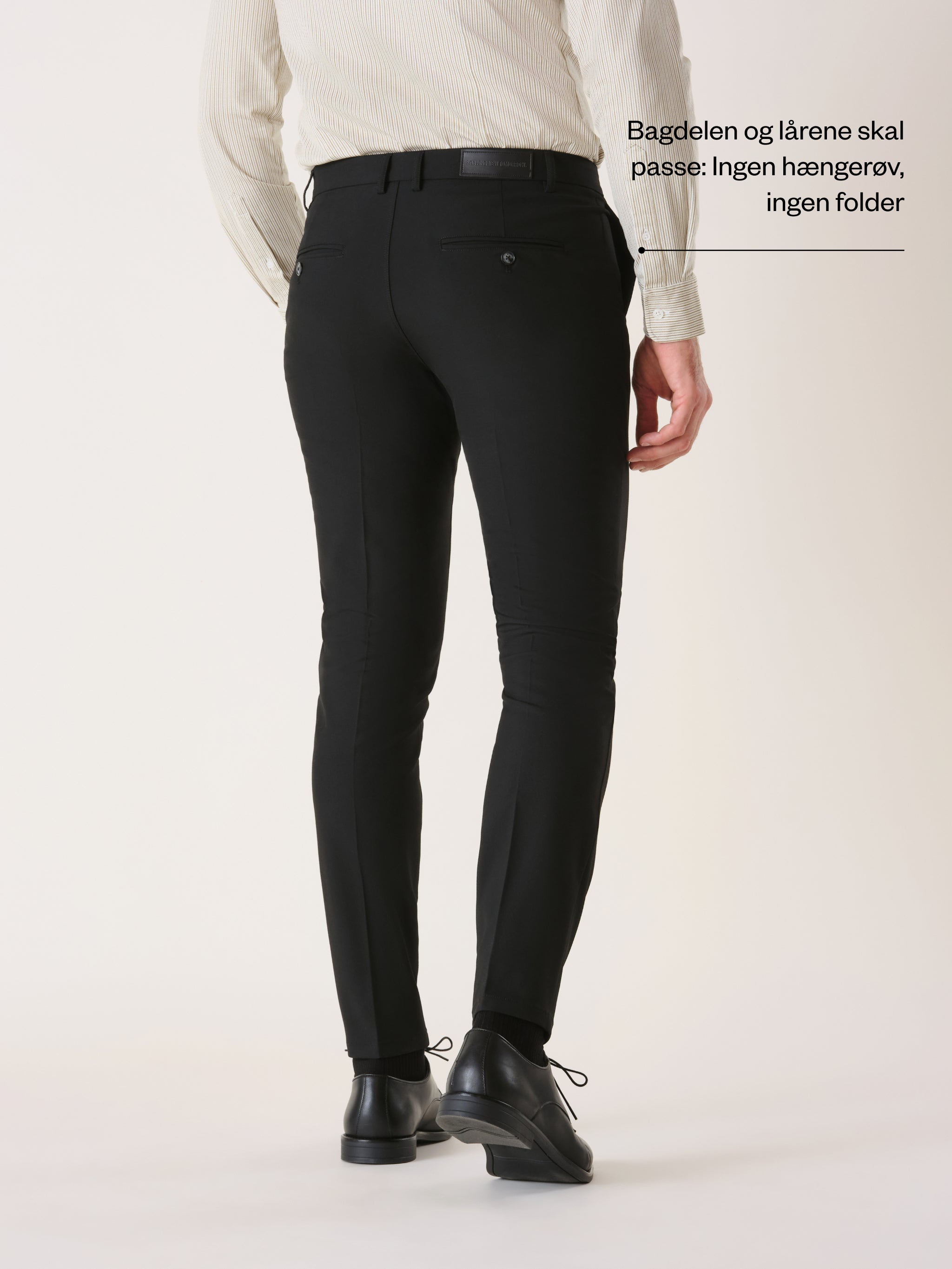 Ja, dine habitbukser skal selvfølgelig passe i længden og bredden, men der er faktisk endnu mere, du skal være opmærksom på. Start med at tag et godt kig på bagdelen. Her burde der hverken være hængerøv eller mærkelige rynker i stoffet. Det samme gælder for lårene.