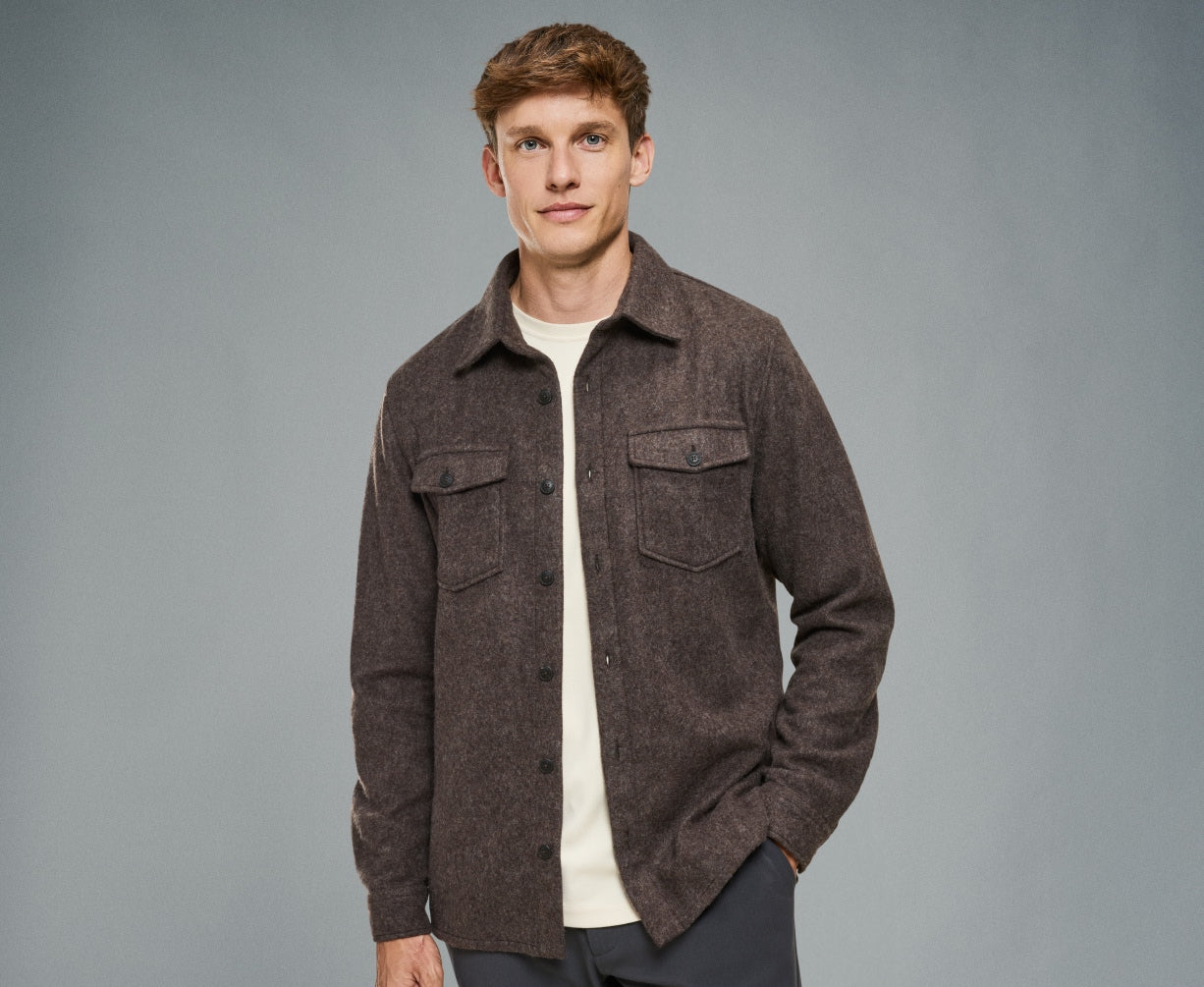 1.499 DKKVarme og stil kombineret: Double-Layer Wool Overshirt har et afslappet, straight fit, der gør det nemt at bruge som ekstra lag – uden at føles oversized. Skjorten er lavet af en uldblanding med en blød inderlag, som holder dig varm og komfortabel gennem de kolde måneder, samtidig med at den bevarer et stilfuldt udtryk.