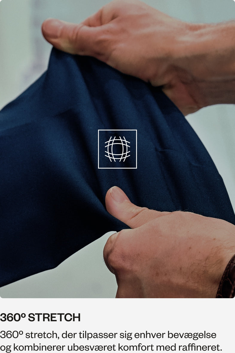 - Innovativt mix af 47% genanvendt polyester, bomuld og elastan