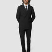 Formelt behøver ikke at føles stift. Den dobbeltradede Essential Blazer i Black matches med Essential Suit Pants og giver et skarpt, struktureret udtryk med plads til bevægelse. Bukserne i relaxed fit holder komforten fra morgenmøder til sene middage – og vores hvide Elevated-skjorte tilfører en skarp kontrast og en ren base.