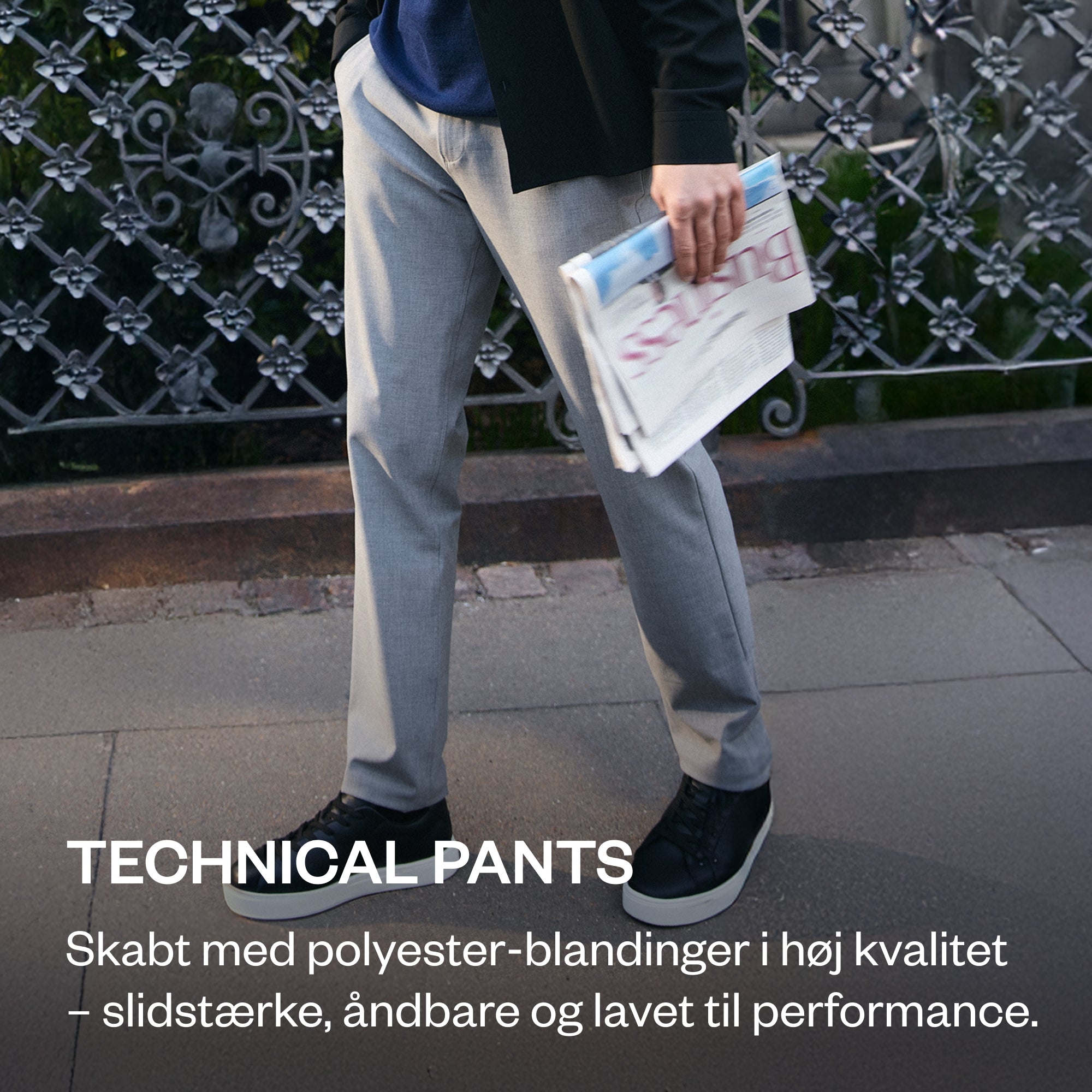 For med ethvert par herrebukser fra SHAPING NEW TOMORROW får du et par bukser, der har et intet mindre end fantastisk elastisk stretch i alle retninger. Det betyder, at det særlige materiale, som vores bukser er fremstillet i, tilpasser sig din krop og følger med, når du bevæger dig – uanset om du er på cykel, på vej til en vigtig forretningsaftale eller i byen med vennerne.