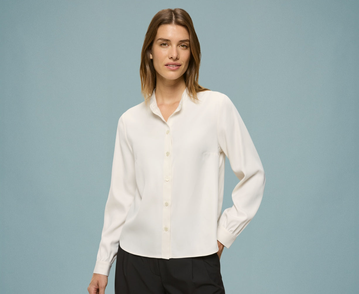 899 DKKLuksuriøs blød fornemmelse, elegant udtryk: Mød vores Vienna Blouse. Denne bluse har en smuk, glat overflade, og så falder stoffet flot om kroppen. Vienna-blusen har kinakrave og let puffede ærmer, der giver et feminint look, som nemt pifter dit outfit op.