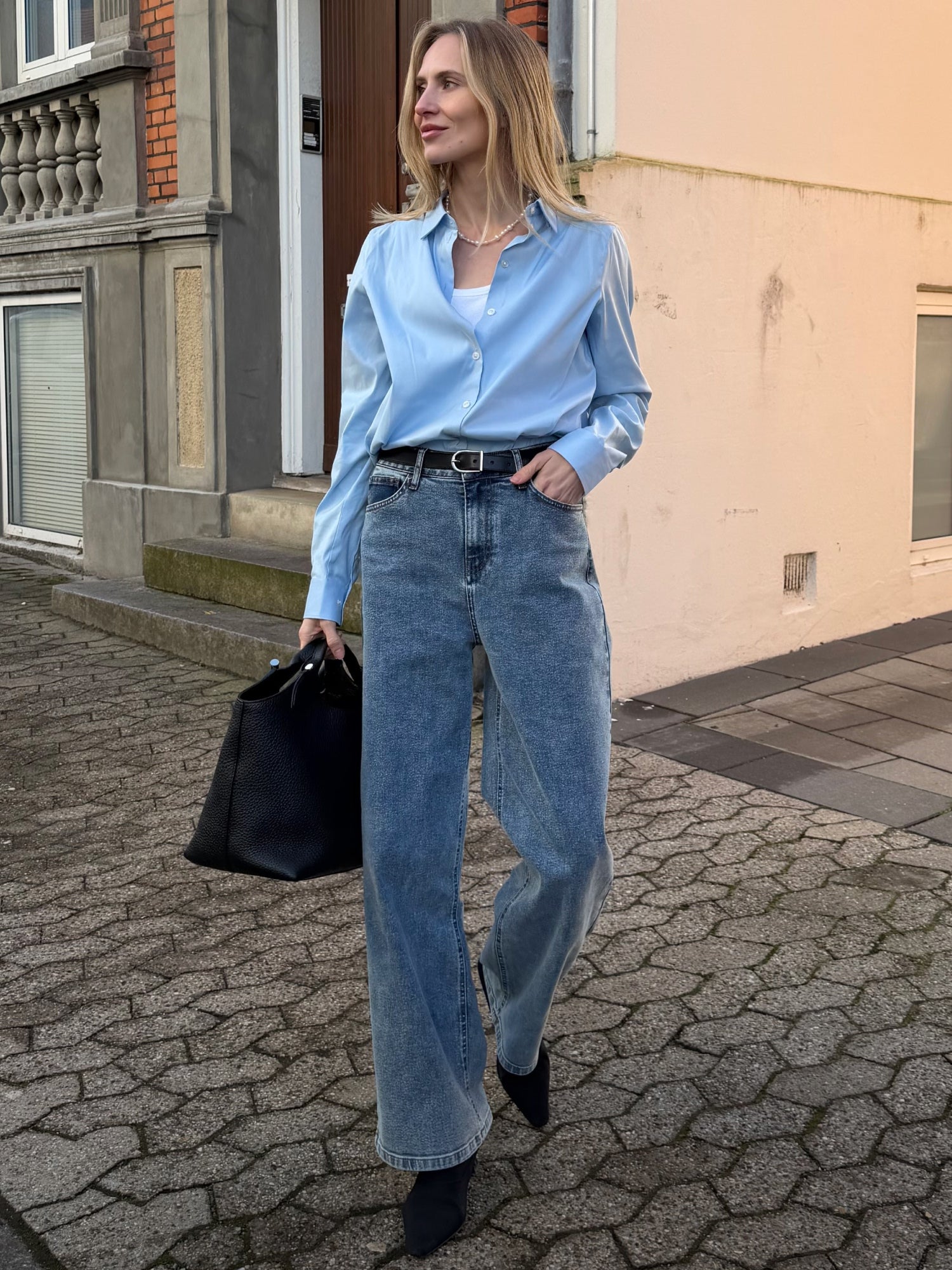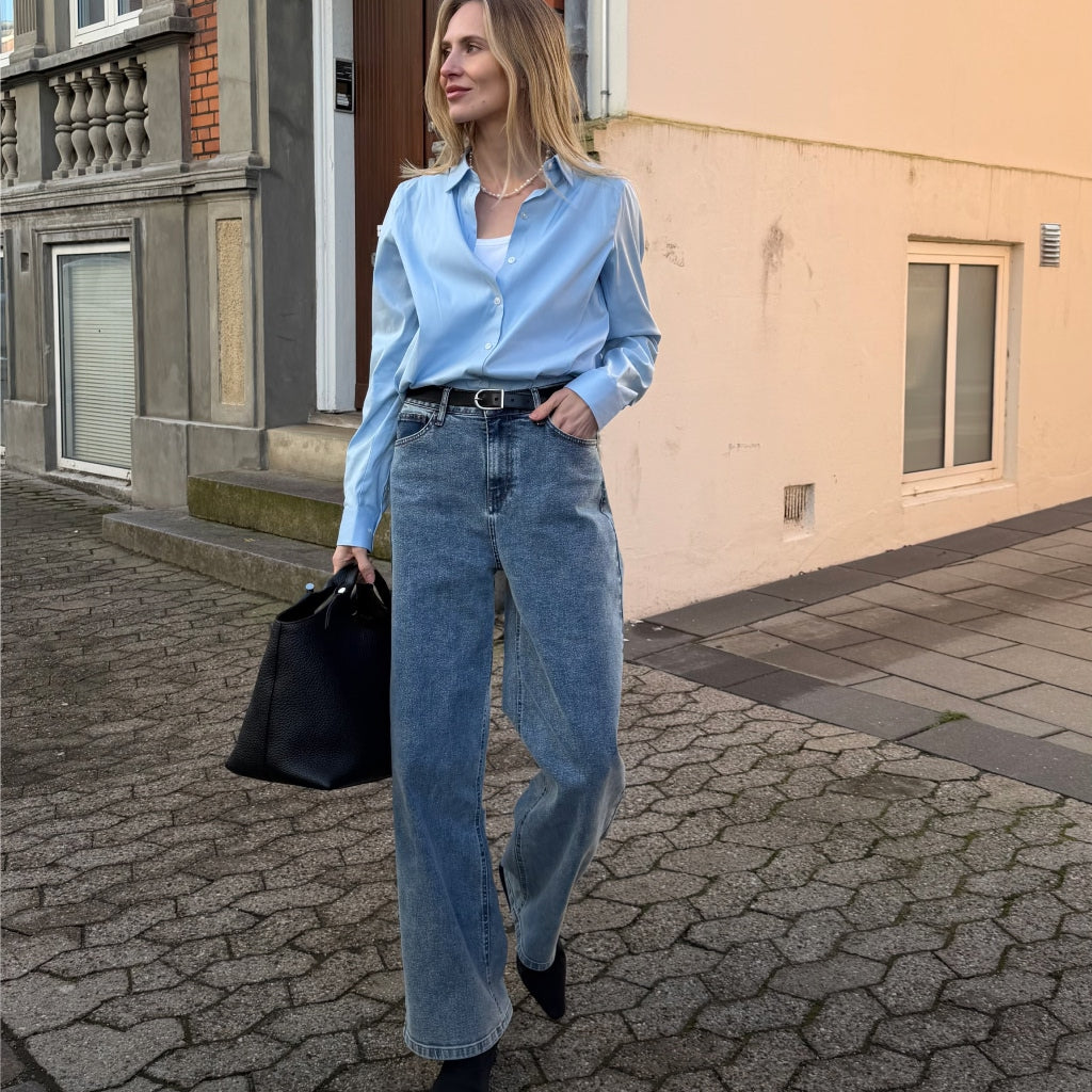 Kollektionens styles kombinerer et rent, klassisk denimudtryk med indbygget stretch, så de følger dine bevægelser naturligt i løbet af dagen. Uanset om du sidder på kontoret, er på farten i byen eller skal videre senere, tilpasser denim sig dit tempo og din hverdag.