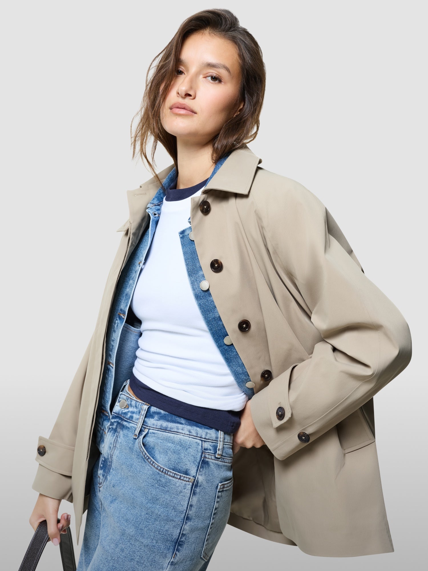 Brug den over tailoring for et skarpt udtryk, eller style den afslappet med bløde strik-styles og mere afslappede silhuetter. En kort trenchcoat er en af de forårsstyles, du vender tilbage til igen og igen.