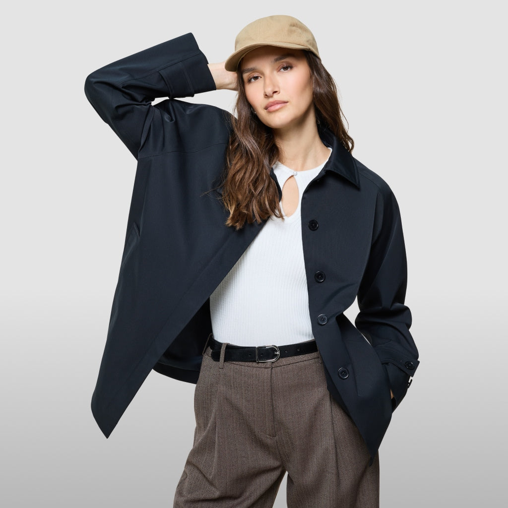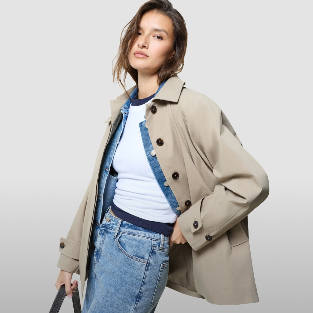 Ingen forårsgarderobe er komplet uden pålideligt overtøj. En vandtæt, kort trenchcoat er uundværlig, når vejret skifter, og giver let beskyttelse uden at gå på kompromis med stilen.
