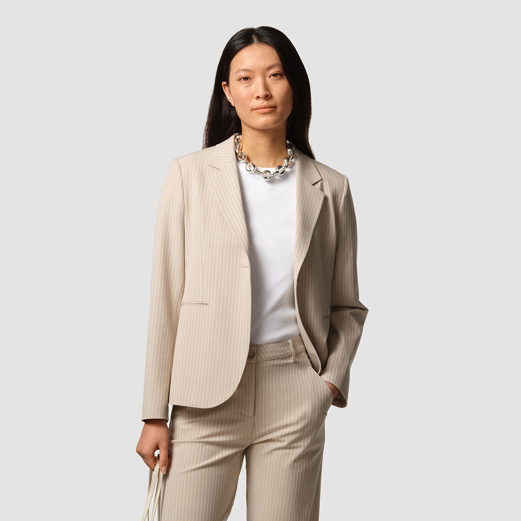 Lag på lag-looks og forskellige teksturer og farver er den højeste forårsmode. På den måde vil dine outfits være lige så praktiske og funktionelle, som de er smukke. En lysebrun blazer er f.eks. perfekt som det yderste lag på en kølig forårsdag. Style den med de matchende Essential Pants, som du kan vælge både i tapered fit og regular fit, og en hvid T-shirt eller stribet skjorte for at skabe lidt kontrast til det lysebrune look.