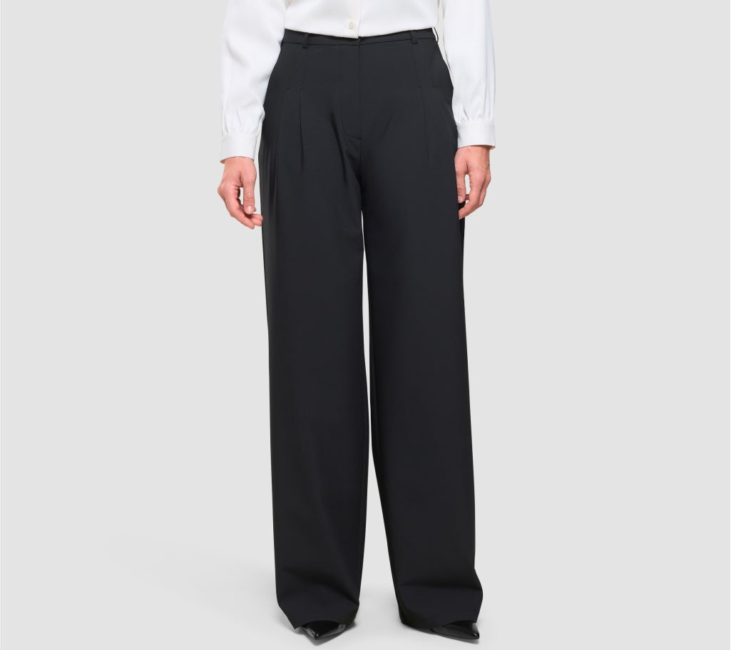 SHAPING NEW TOMORROWs kvindelige designere har skabt flere pasformer inden for vores Essential Pants, og det nyeste skud på stammen er Wide Leg-pasformen, som er højtaljet og har ekstra vidde omkring benene. Du kan også finde vores Tapered og Straight fits. Alle tre pasformer er højtaljede, men Straight-pasformen har lidt ekstra vidde og lige ben, mens Tapered-pasformen er lidt løsere omkring lårene og sidder tættere ind ved anklen for at give en flatterende silhuet.