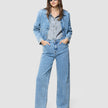 Her bliver der skruet op for denim — men på den helt rigtige selvsikre måde. Den ene denimjakke bruges som skjorte under den anden oversized jakke, så looket føles bevidst uden at blive stift. Sammen med Classic Jeans i Light Grey Washed giver det et stærkt all-denim look, der stadig føles moderne og naturligt at have på.